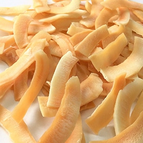 種抜きした後、乾燥しております。自然な甘酸っぱさが特徴的で、製菓製パンでお使い頂けます。 薄くサクサクとした食感が特徴です。ケーキなどの洋菓子のトッピングに多用されココナッツの風味が感じられる商品です。 サクサクした食感とマンゴー本来の風味が味わえます。 程よい辛さと砂糖の甘みが特徴的で、そのままお召し上がり頂けます。
