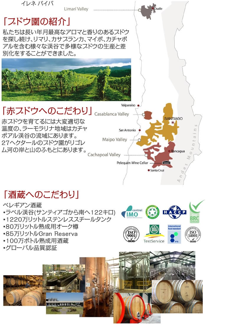 辛口でありながら完熟した果実のフルーティーさと程よい渋みと味わいが特徴のチリ産赤ワイン・カベルネソーヴィニヨンです。
