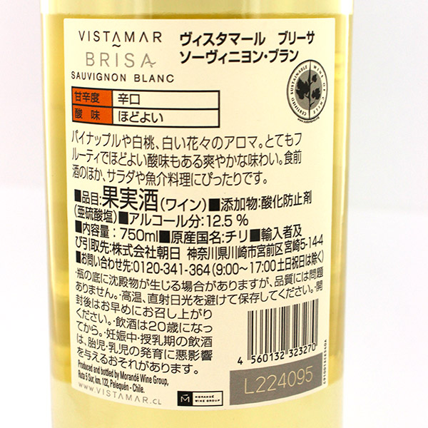チリ産 白ワイン ビスタマール・ブリーザ ソーヴィニヨン・ブラン 750ml×12本 送料無料