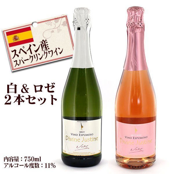 ディヴィーヌ ジュスティーヌ ブリュット 白&ロゼ セット 750ml スペイン産スパークリングワイン