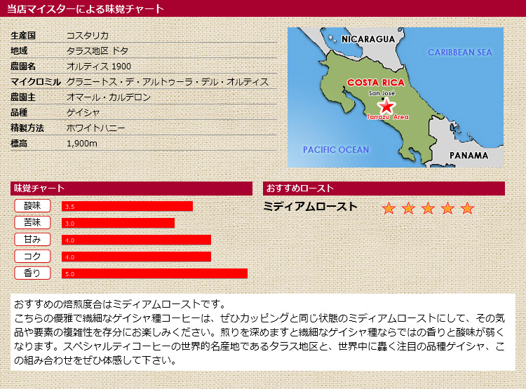 限定品 コスタリカ グラニートス オルティス1900 ゲイシャ