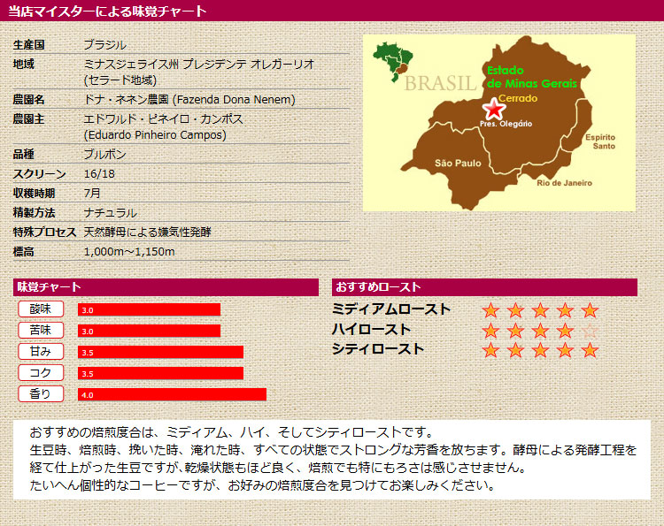 「特別にフルーティーなフレーバー」を追い求める研究は続き、年に1度の収穫には準備をした何通りもの実験を試み繰り返した結果、安定してフルーティーなフレーバーを、ある程度計画的に作り出すことができるようになったそうです。 そして4つの農園に協力を依頼して、2018年クロップから本格的な販売が開始されました。 詳細な製造工程は現在のところ企業秘密だそうで、既にブラジルにて特許出願しており、商標登録申請中とのことです。