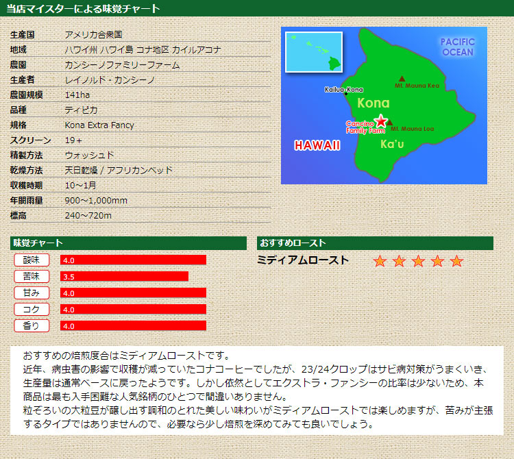 限定品 ハワイコナ エクストラファンシー カンシーノファミリー農園