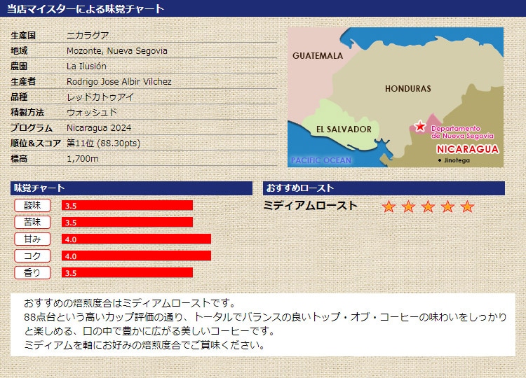- 生産国:ニカラグア