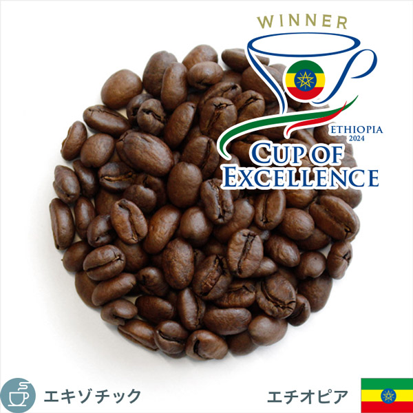 最高の中の最高のコーヒーを選ぶ「カップ・オブ・エクセレンス 2024 エチオピア」に見事に選ばれたコーヒーが届きました! 明るくジューシーな酸味、上品なコクと甘さ、そして芳醇な後味が特長の入賞ロット「アザレチ ナチュラル」です。