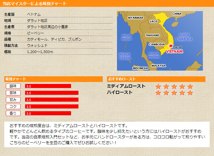 トータルバランスが良く、マイルドでどんどん飲めるコーヒー『 ベトナム アラビカ ダラットピーベリー 』が届きました。