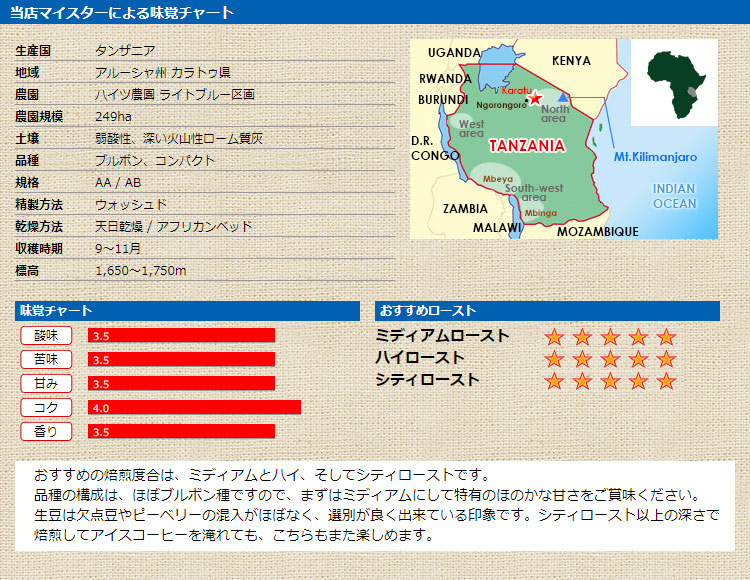なお、焙煎後の量目は焙煎時間により10%〜20%前後少なくなります。