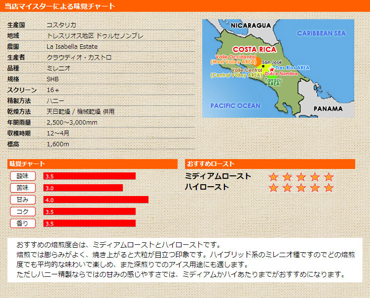 限定品 コスタリカ イサベラ農園 ミレニオ ハニー