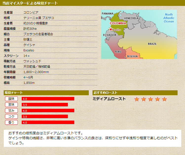 限定品 コロンビア ナリーニョ ゲイシャ
