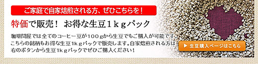 珈琲問屋ではすべてのコーヒー豆が100gから生豆でもご購入が可能です。 こちらの銘柄もお得な生豆1kgパックで販売しております。