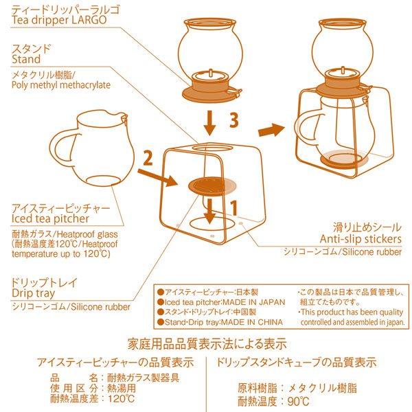 原産国:スタンド、ドリップトレイ:中国 ティードリッパーラルゴ、アイスティーピッチャー:日本