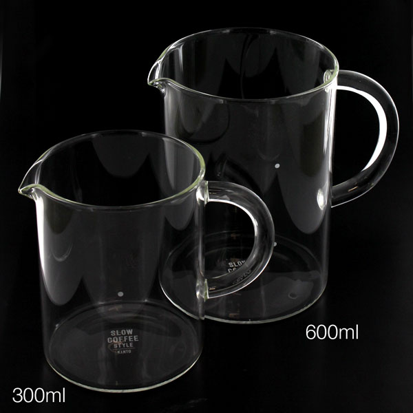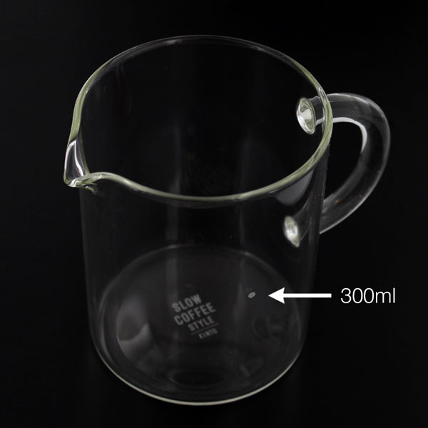 ドリップの様子が見える耐熱ガラスのシンプルなジャグです。スローな時間を楽しむためのコーヒーウェアです。 白いマーク部分が300mlラインです。
