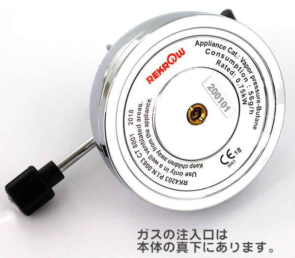 市販のカセットガスボンベからガスを充てんできます。
