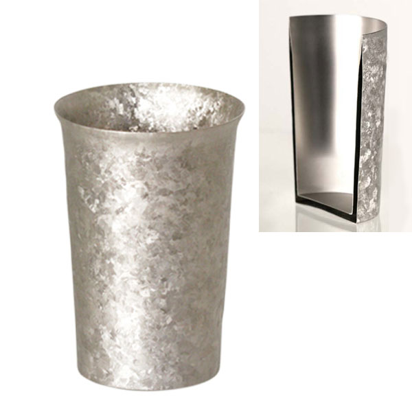 1055℃の窯の中で生まれ変わったチタン2重構造タンブラーです。 高温に耐えた証拠のデコボコしたフォルムは独特のぬくもりがあり、触り心地はシルクのようになめらかです。 複雑な表面は高級感もあります。新しい技術で真空二重タンブラーと同等の保冷力があります。