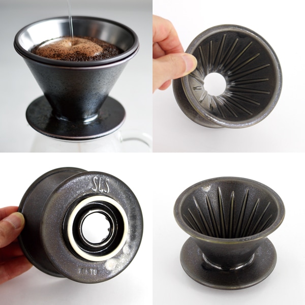 ステンレスフィルターで淹れるコーヒーは、旨み成分であるコーヒーオイルを多く抽出し、コーヒー本来のアロマをダイレクトに味わえ、ペーパーフィルターでは、クリアでマイルドなコーヒーの飲み心地を愉しめます。底面には大きめの一つ穴が空いており、円錐形のSCSステンレスフィルター、SCSコットンペーパーフィルター、いずれもセットして使うことができます。