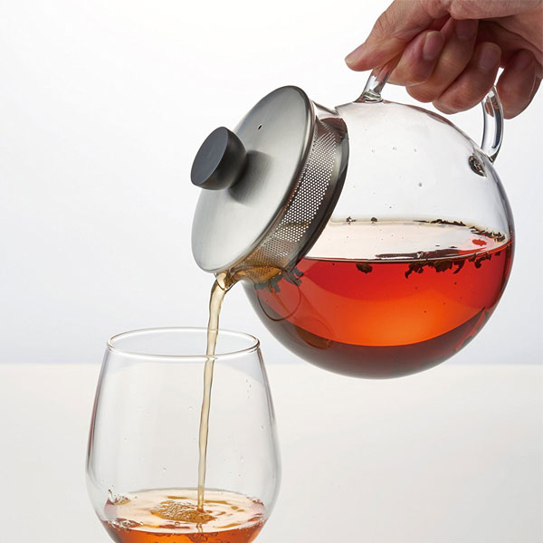 お茶の色合いが目で愉しめます。フタとフィルターが一体になっているのでそのまま注げます。