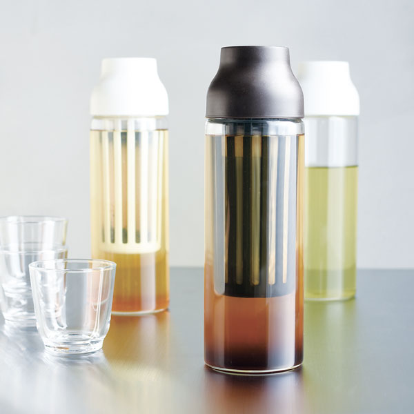 CAPSULE(カプセル)コールドブリューカラフェは傾けると自然に蓋が開き、ぐるり360度どの方向からも注ぐことが出来るカラフェです。 冷蔵庫のドアポケットに収まるスリムなサイズも特徴です。 ボトルは耐熱ガラス製なので、匂いや色がつきにくく衛生的です。