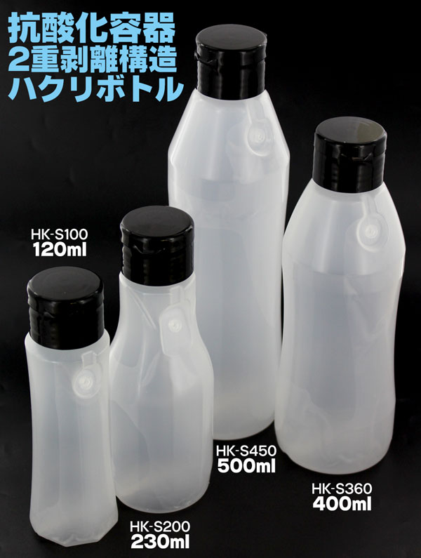 抗酸化容器・ハクリボトル HK-S100 キャップ (黒)付 120ml 2重剥離構造ソフトボトル