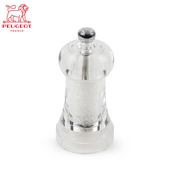 キッチンツールの逸品、フランス・プジョーの中身が見えるアクリル製ミルです。特許をもつグラインダー(刃)で挽いた塩の香りや味は格別です。