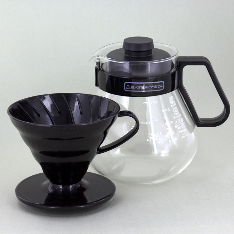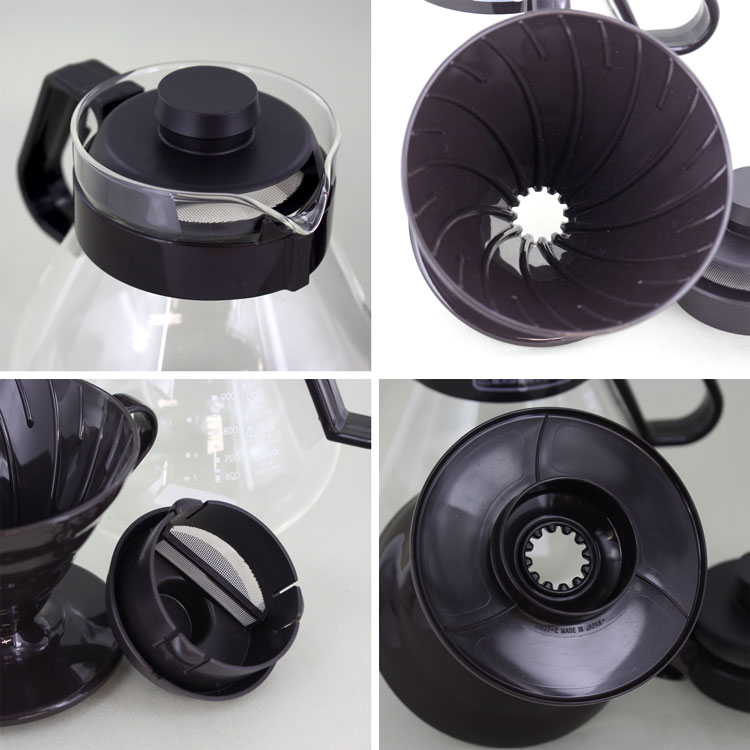珈琲豆のおいしさを引き出す円すい形のハリオV60ドリッパーとフタをしたまま電子レンジで使える1000mlサーバーのセットです。ハリオ製のサーバーのフタには注ぎ口の裏側にメッシュの茶こし付きで、紅茶をリーフのまま入れて抽出することが出来ます。サーバーの形状も茶葉のジャンピングに適した丸型です!