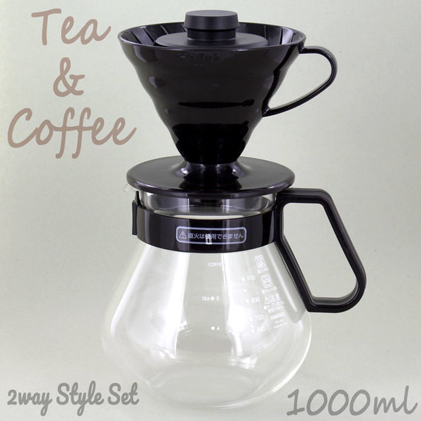 ハリオ ティー&コーヒー 2way スタイルセット 1〜4杯用 (サーバー1000ml) TCVD-02-NF ブラウン(黒めのブラウンです)
