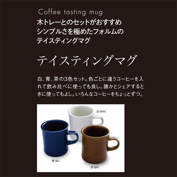 bonmac ボンマック コーヒーテイスティングマグ 白・青・茶の3個セット(各120ml)