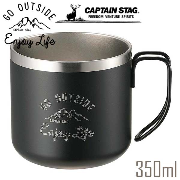 キャプテンスタッグ モンテ ダブルステンレスマグカップ 350ml (ブラック) 真空二重構造 保温・保冷 UE-3429