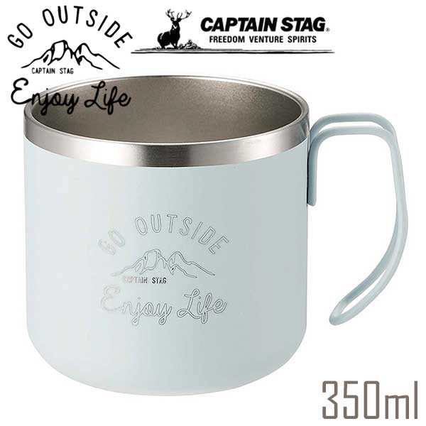 キャプテンスタッグ モンテ ダブルステンレスマグカップ 350ml (サックス) 真空二重構造 保温・保冷 UE-3432