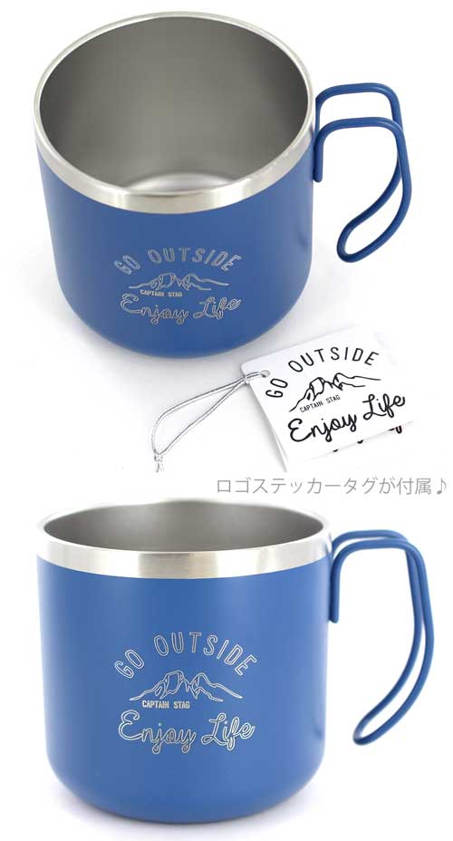 キャプテンスタッグ モンテ ダブルステンレスマグカップ 350ml (ブルー) 真空二重構造 保温・保冷 UE-3433