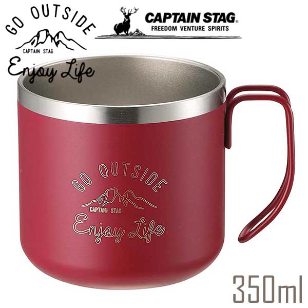 キャプテンスタッグ モンテ ダブルステンレスマグカップ 350ml (レッド) 真空二重構造 保温・保冷 UE-3435