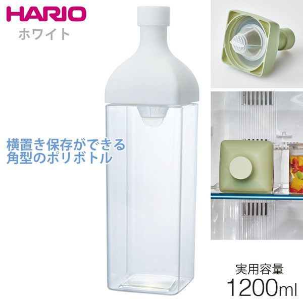 HARIO ハリオ カークボトル 1.2L ホワイト KAB120W / 水出し茶 紅茶 お茶 フィルターイン 横置き 角型ボトル