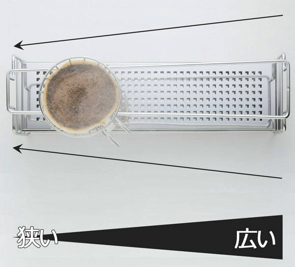 棚の幅の広さを変えることで、コーヒードリッパーの形状&大きさを問わず置ける形状になっています。