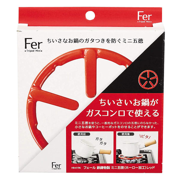 パール金属 HB-4196 フェール 琺瑯ミニ五徳 レッド 14cm