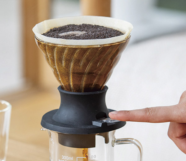 コーヒー粉をお湯に浸漬(しんし)してから抽出する1cup用ドリッパーです。 スイッチを押してドリップ(指を離しても最後までドリップできます)するので、どなたにでも均一な抽出が可能です。
