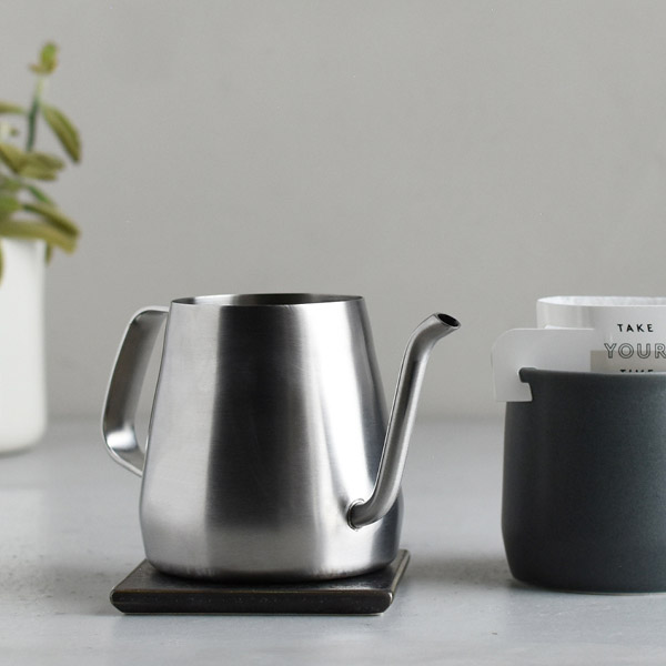POUR OVER KETTLE(プアオーバーケトル)は、使用する上でのストレスを最小限に抑えたデザインで、美しい質感とコンパクトなフォルム、主張しすぎない上質な佇まいが静かな存在感を放ちます。