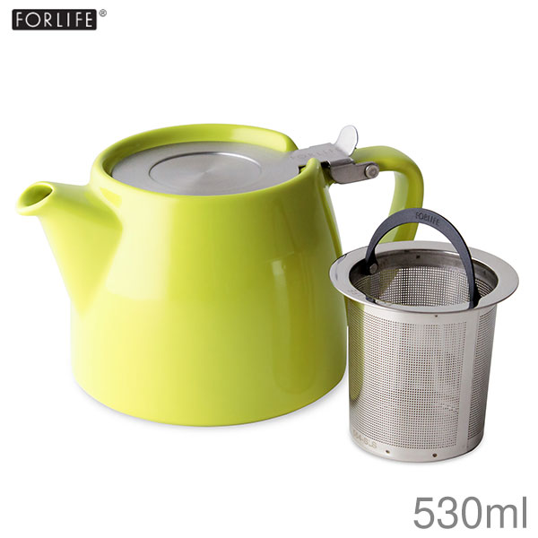 FORLIFE フォーライフ スタンプ ティーポット ライム 530ml 硬質陶器 片手で注げる便利な設計 ステンレスフタ&茶こし付