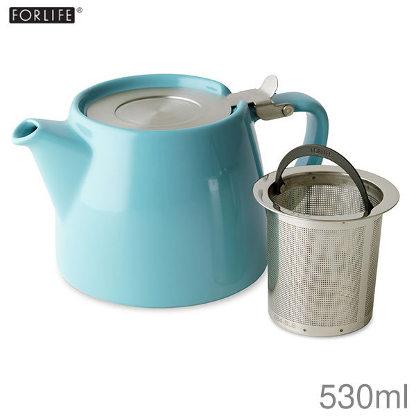 FORLIFE フォーライフ スタンプ ティーポット ターコイズ 530ml 硬質陶器 片手で注げる便利な設計 ステンレスフタ&茶こし付