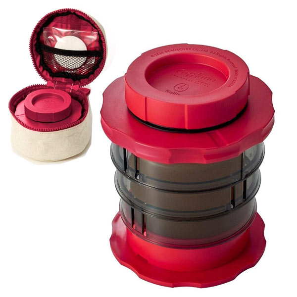 カリタロゴ入りの、おしゃれな専用バッグに入れて持ち歩けるコンパクトサイズで、旅先や職場などでお湯をいれて簡単にコーヒーを楽しめる他、ハイキングの前に水とコーヒーの粉をいれて持ち歩けば、山頂に着く頃にはコーヒーが出来上がります。アウトドアコーヒーにもおすすめです。