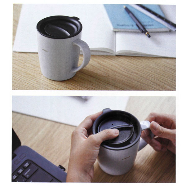 外さずにそのまま飲めるフタ付きでオフィスでも安心。