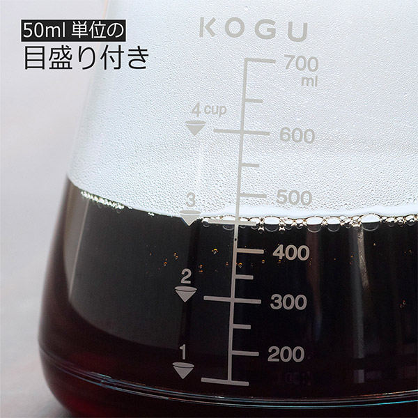 珈琲考具などのドリッパーを直接セットできます。注いだ量も分かりやすい目盛り付。 サーバーはフタ付でドリッパーの受け皿にしても使用できます。 耐熱性にも優れているので電子レンジの加熱にも使用もできます。食洗機にも使用OK。 直接火にかけることはできません。