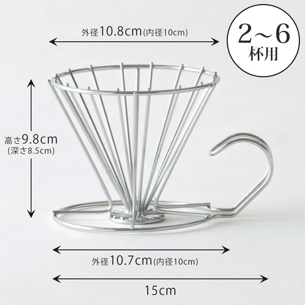 2〜6人用の円すいフィルター、台形紙フィルターのどちらでも使えます。