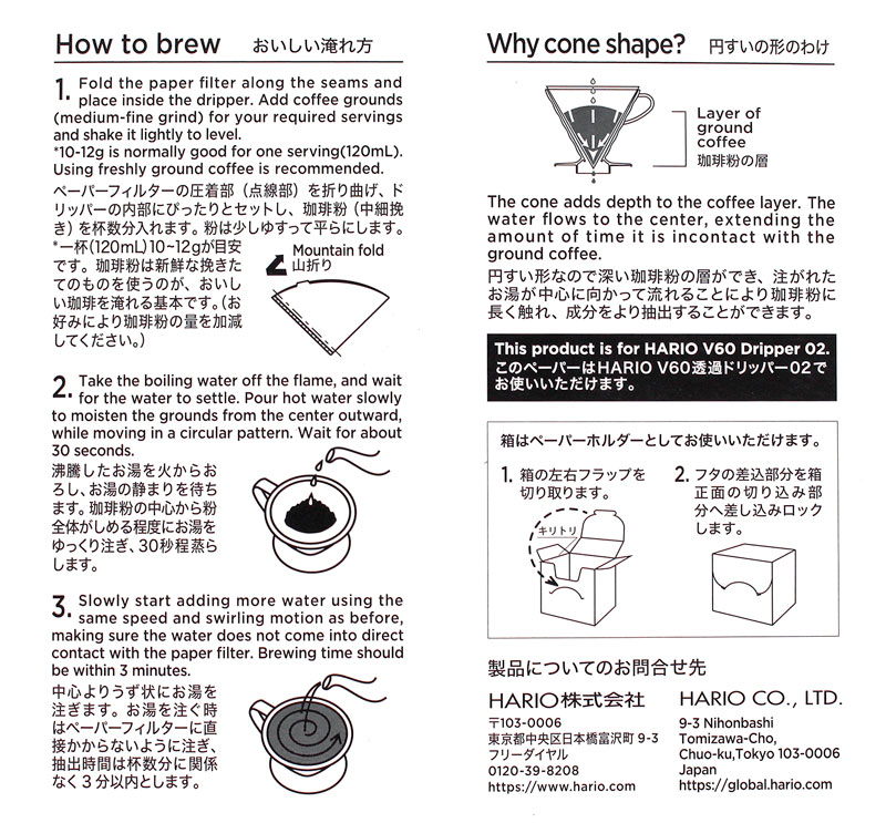 ハリオ V60 02用 円錐フィルター100枚 箱入り VCF-02-100WK 白