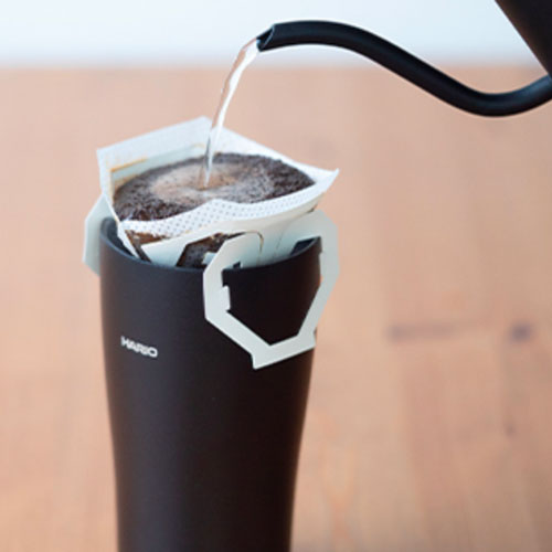 円すい形のわけ 円すい形なので深いコーヒー粉の層ができ、 注がれたお湯が中心に向かって流れることによりコーヒー粉に長く触れ、 成分をより抽出することができます。