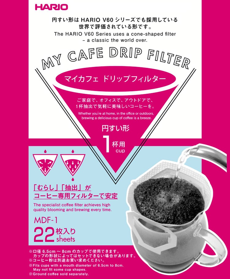 世界で評価されているV60でも採用している円すい形フィルターです。