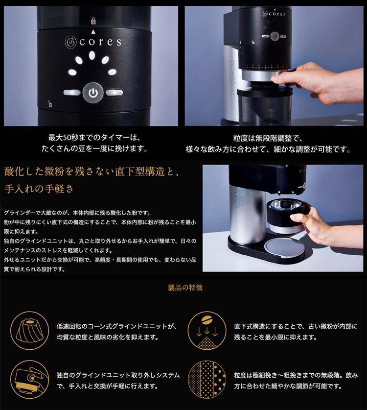 CORES コレス コーングラインダー C330 極細挽き-粗挽きまで無段階設定のコーヒーミル