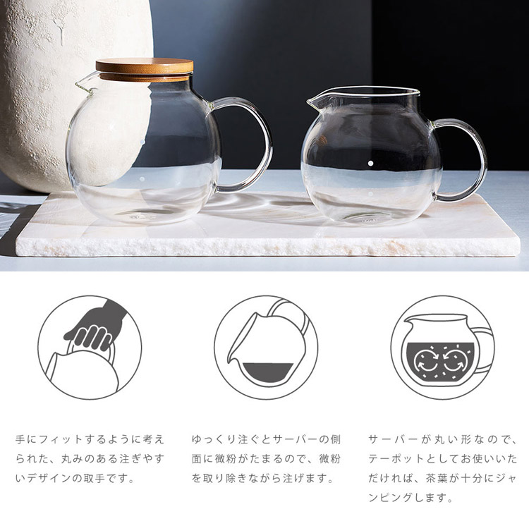 サーバーの丸い形は、ゆっくり注いでいただければ、 サーバーの側面に微粉が溜まるので、微粉を取り除きながら注ぐことができます。