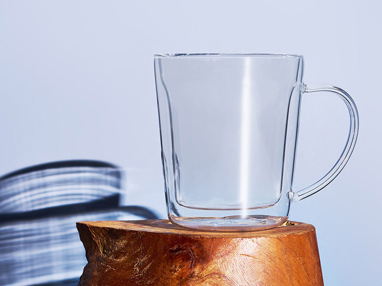 ● カップは熱い飲み物が冷めにくいガラス製のダブルウォール保温マグです。