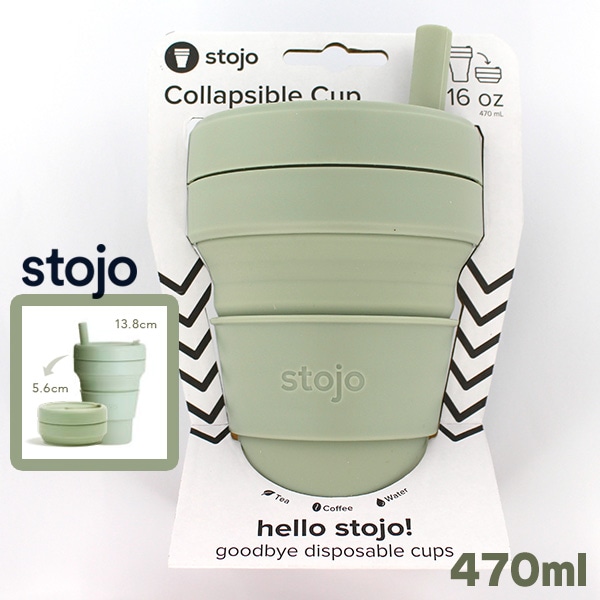 stojo ストージョ SAGE 16oz 470ml シリコン素材のストロー付き折り畳みマイカップ