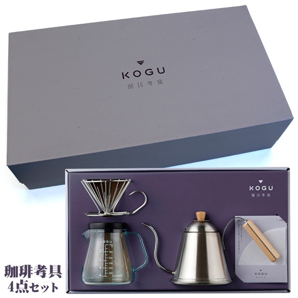 珈琲考具の自信作、ドリッパー、ポット、コーヒーサーバー、フィルターの豪華4点ギフトセットでこだわりの一杯を!