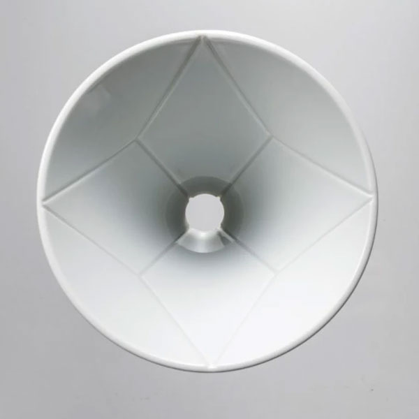 お湯を注ぐと内側のスターライン(星状)の溝をつたって、ゆっくり抽出される構造です。 使い方は簡単。円すい形ペーパーフィルター(02サイズ)をセットし、 中細挽きのコーヒー粉20gを入れ、お湯240mlを中心からうず状にゆっくりと注ぎます。(蒸らしはしません)
